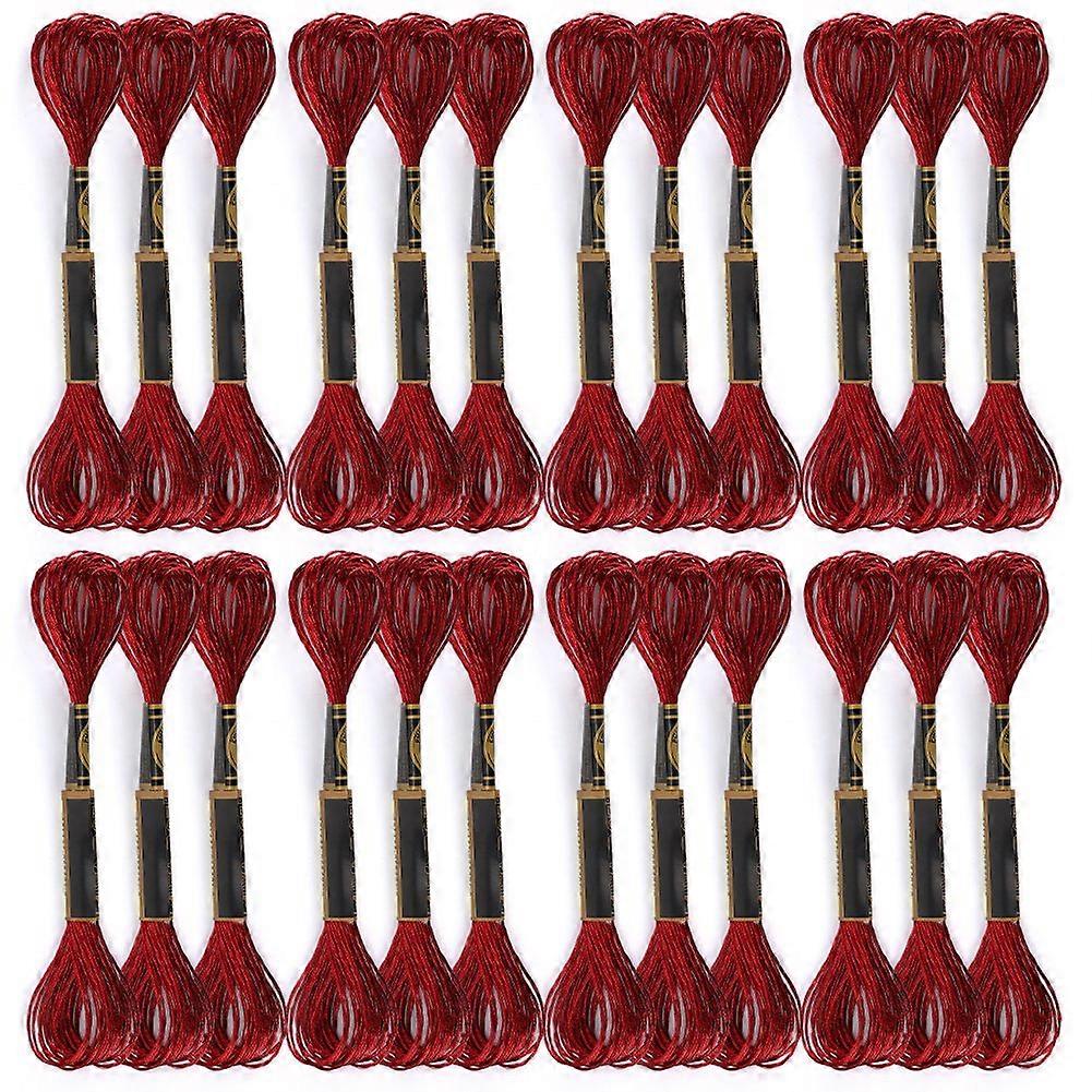24Pcs CrossStitch Thread Red Embroidery Glossy Braided Floss HandMade Yarn Cotton Skeins