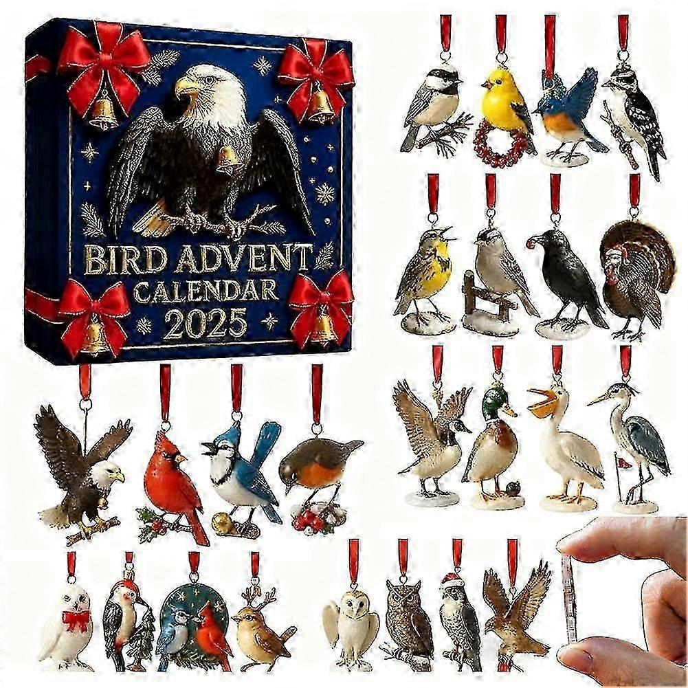24Pcs 2D Bird Advent Calendar Christmas Tree Decoration Acrylic Pendant miao4