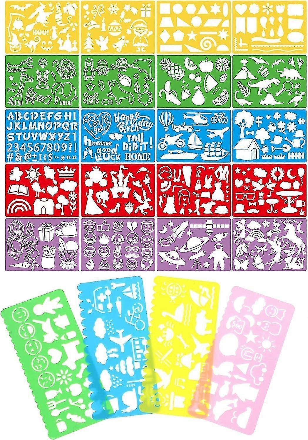 24 Pcs Drawing Art Stencil Reusable Plastic Scrapbook Kid Painting Graphics Stencils Diy Template Set For Card, Journals,albums, Diary, Window, Wall D