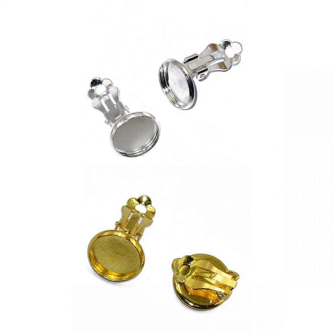 24 Pcs Clip On Earrings Findings Fit 12mm Cabochon Settings Silver & Gold