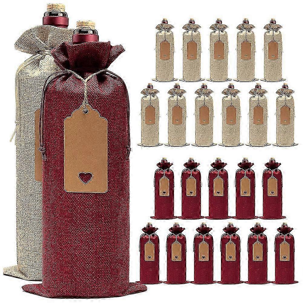 24 Pcs Burlap Wine Bags Bags,Wine Bottle Bags with Drawstrings,Tags & Ropes,Reusable Wine Bottle Co JKW