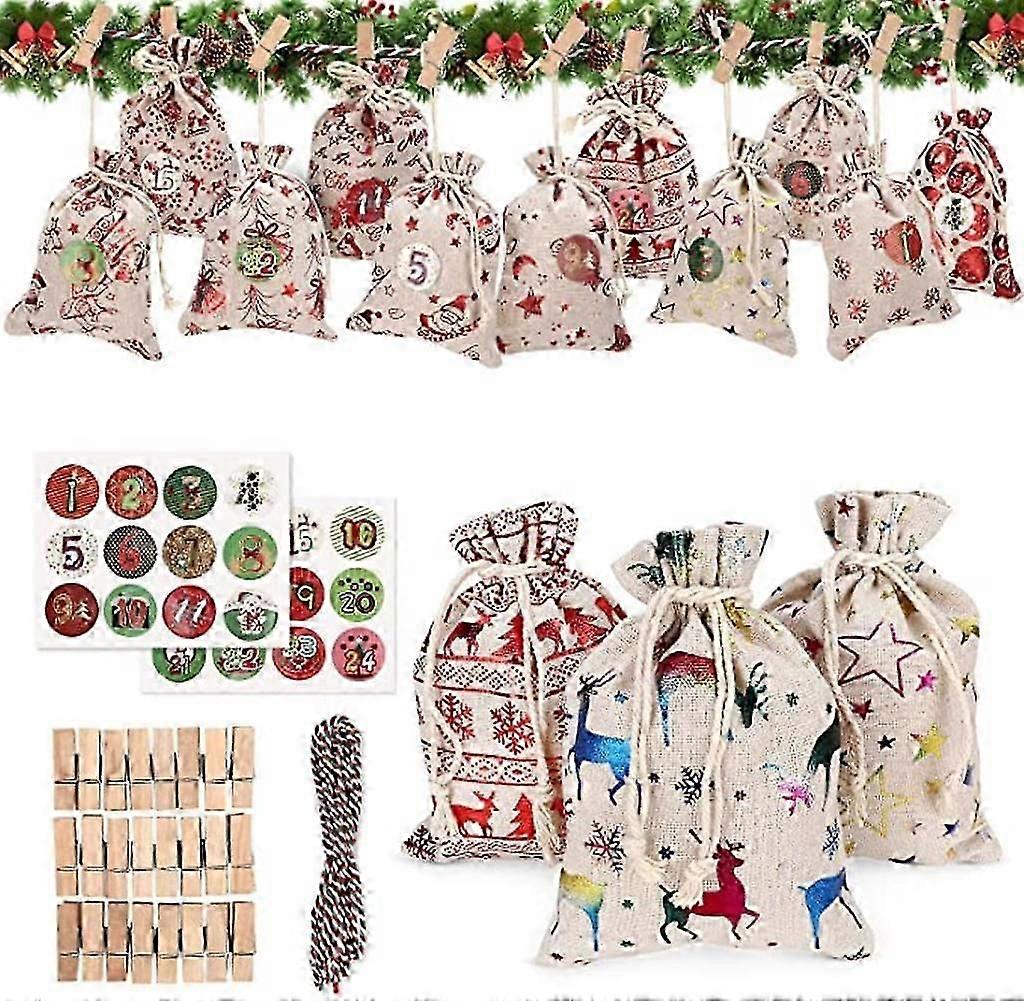 24 Christmas Calendar Bags Burlap Hanging Advent Calendar Garland Candy Gift Bag Diy Countdown
