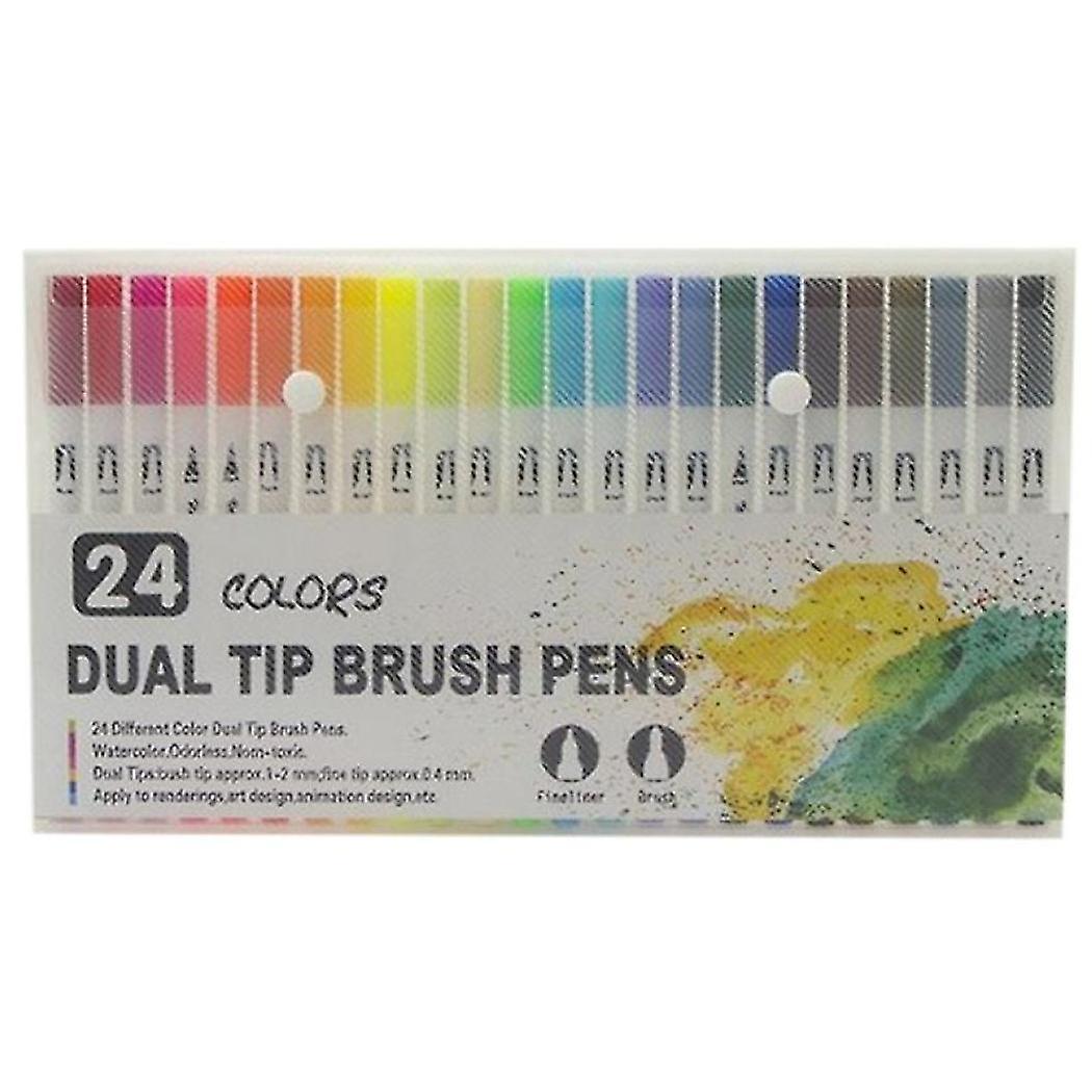 24 Color Fine Liner Dual Tip Brush Pen Felt-tip Pen Drawing Painting Watercolor Art Marker Pens School Supplies
