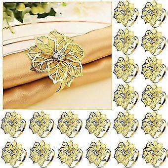 24pcs Metal Napkin Rings With Floral Rhinestone Design For Wedding