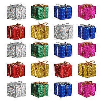 24pcs Mini Christmas Tree Ornaments Hanging Small Gift Boxes Pendants Xmas Tree Mini Decor Party Supplies