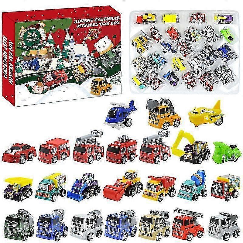 24pcs Model Cars for Boys 2-6 Years Old, Fire Trucks, Engineering Vehicles, Excavators, Christmas Advent Calendar, Kids Toys