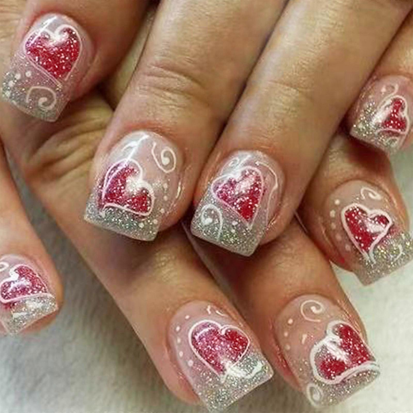 24Pcs Square Fake Nail Press On Nail Artificial Nail False Nail Glues On Nail Valentine Designs French Nail Tips Gifts
