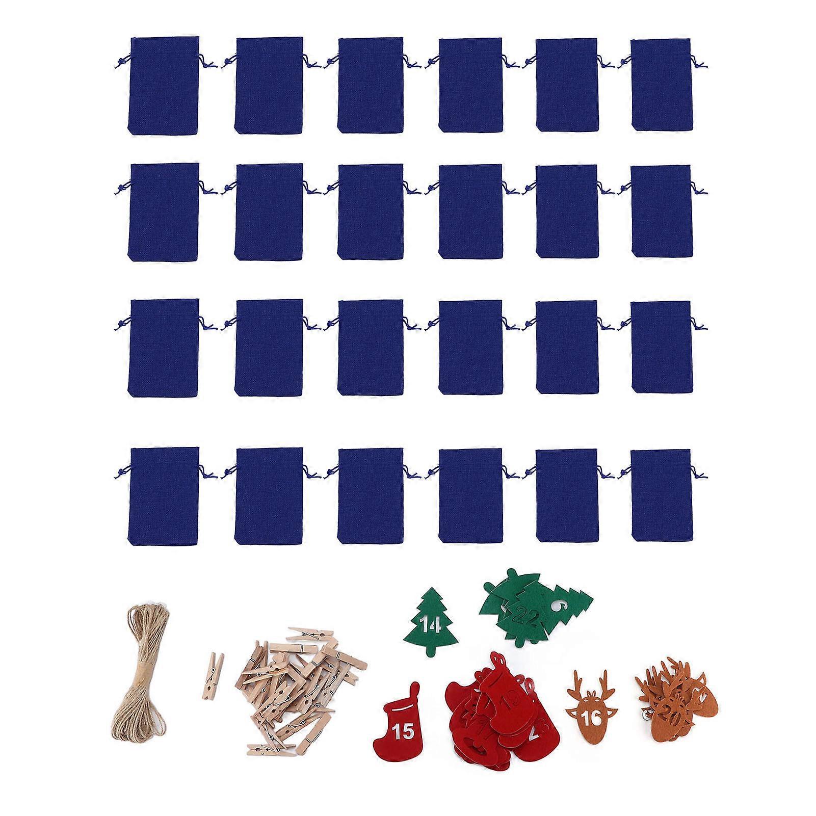24Pcs Christmas Advent Calendar Drawstring Bags Reusable Hanging Countdown Pouch for Candy Jewelry GiftDark Blue