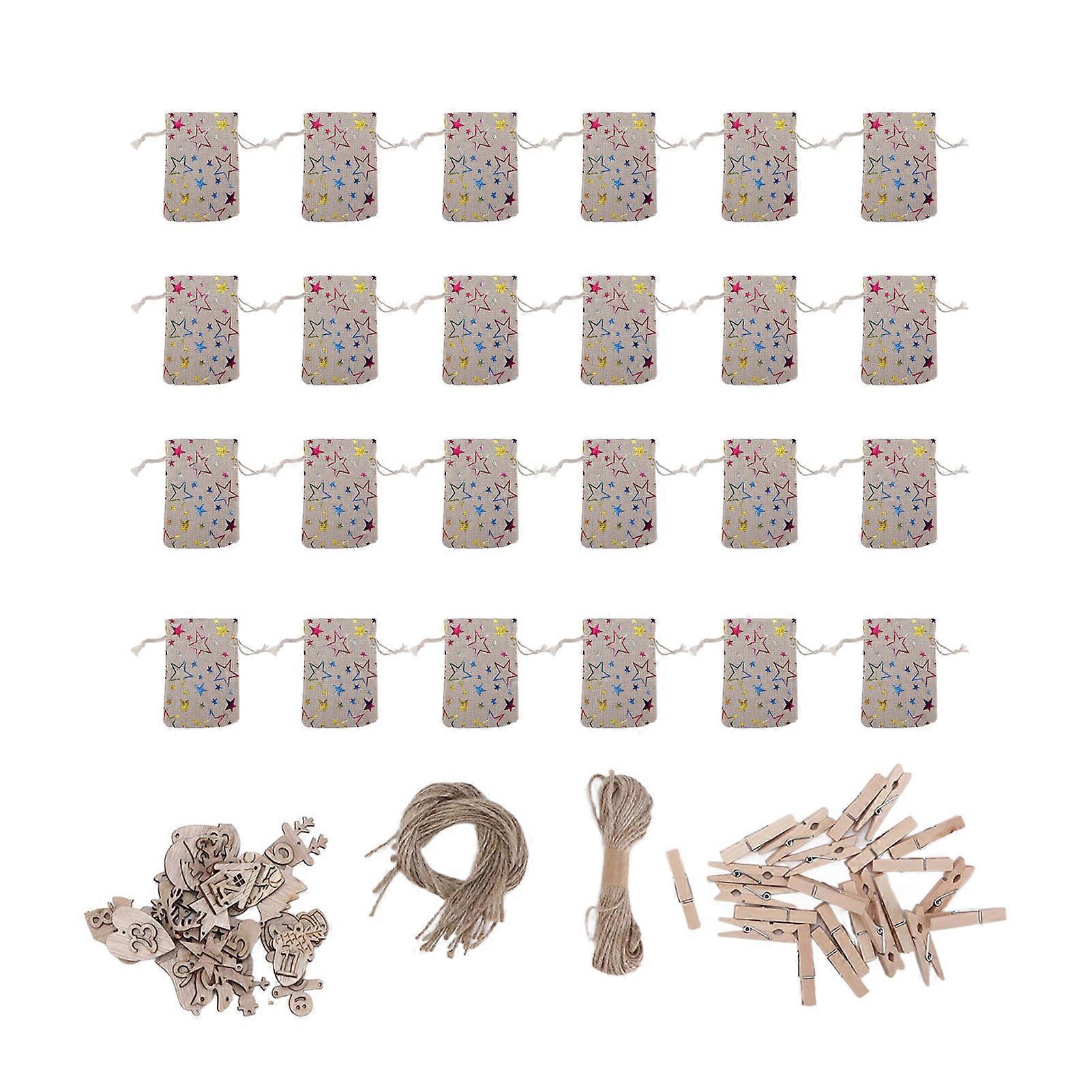 24PCS Christmas Advent Calendars Bags Hanging Sacks Drawstring Gift Pouches for Party Favor SuppliesStar Style