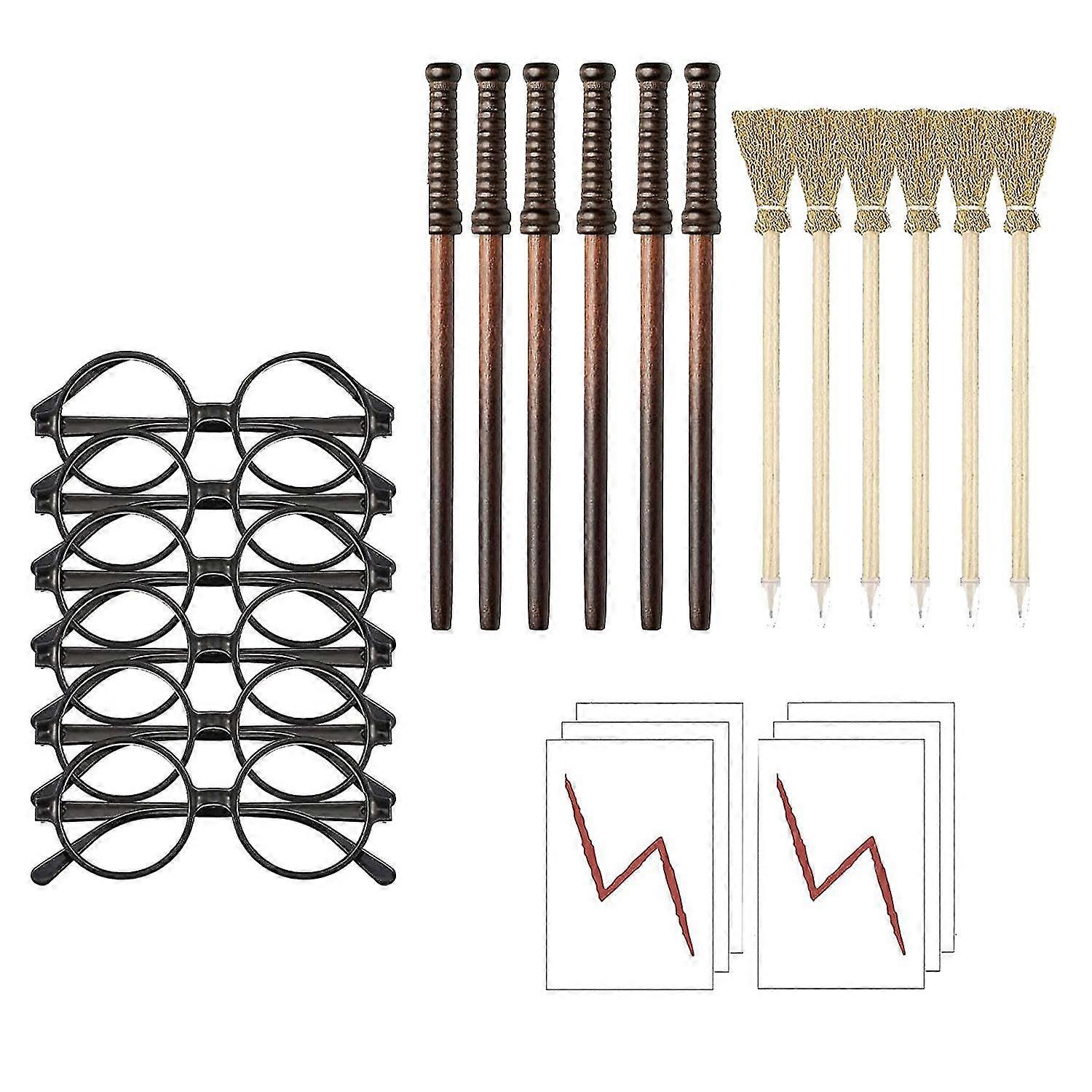 24piece Witch Broom Pencil Wand Pencils Tattoo Stickers Glasses With Round Frame No Lenses For Birt-haoyi