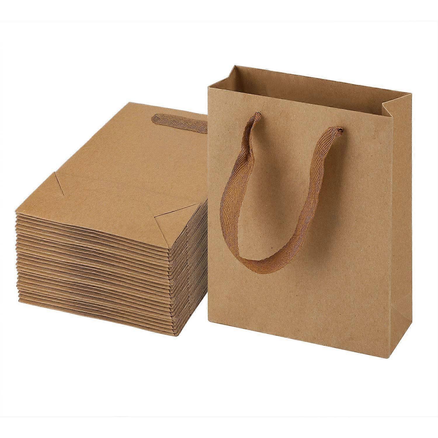 25 Pcs Paper Grocery Bags, 9.8" x 5.1" x 12.6" Brown Kraft Paper Bags with Handles, Kraft Bags, Part