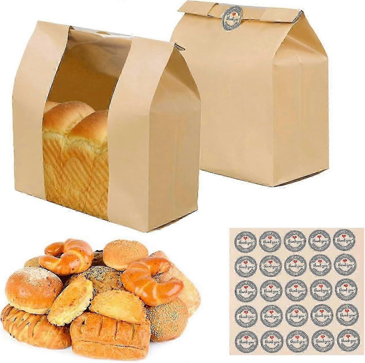 25 Packs Paper Bread Bags For Homemade Bread, Sourdough Bread Kraft Paper Bags, Brown Bakery Bags with Window for Home Baking Packaging Storage Brown