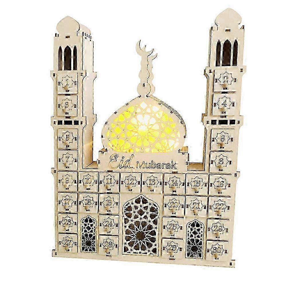 25-26 Ramadan Advent Calendar Wooden Ornament Eid Mubarak Countdown Calendar Decoration with LED Lights