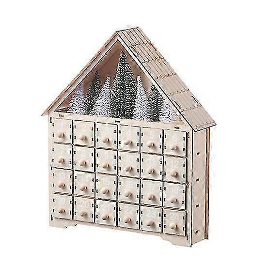 25-26 Wooden Christmas Advent Calendar with 24 Empty Storage Drawers House Shape Christmas Countdown Calendar Home Decor