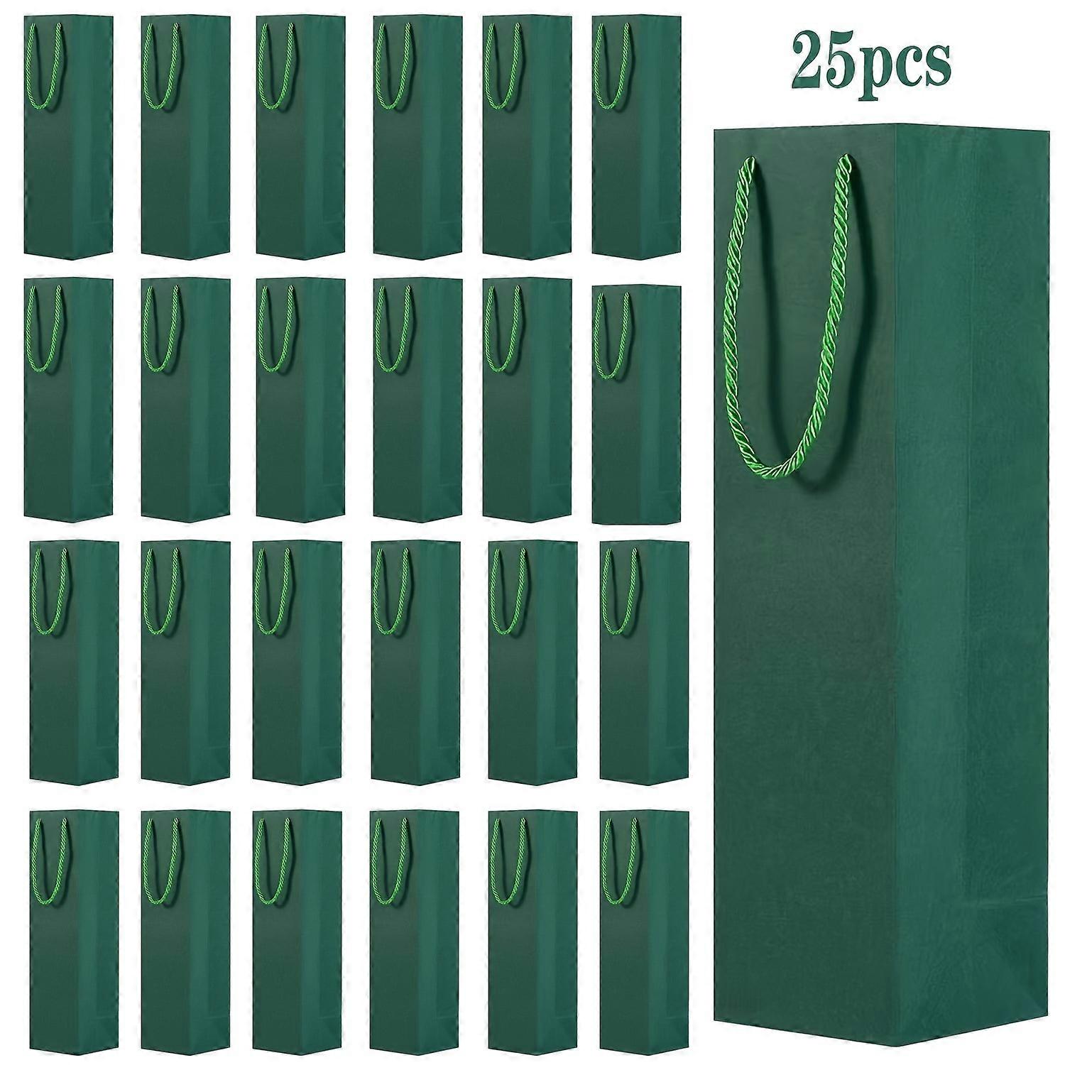 25-Pack Premium Green Kraft Paper Wine Gift Bags With Handles - Durable Single Bottle Carrier For Christmas, Parties, Shopping & Travel - Leakproof Wi