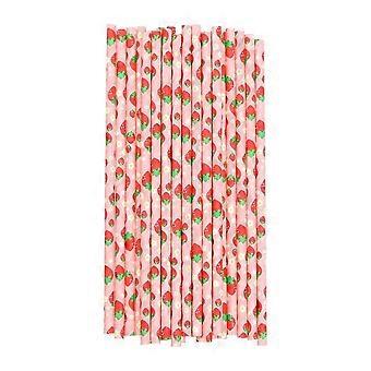 25 Stick Disposable Paper Straws Party Handmade Environmental Straw(Deep strawberry)
