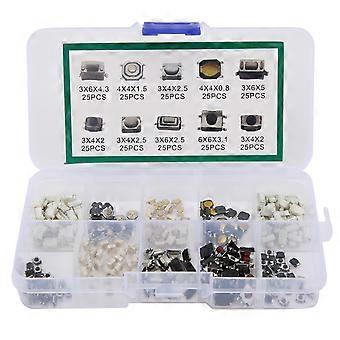 250Pcs Tactile Push Button Switch 10 Types Micro Switch Kit for DIY Electronic Products