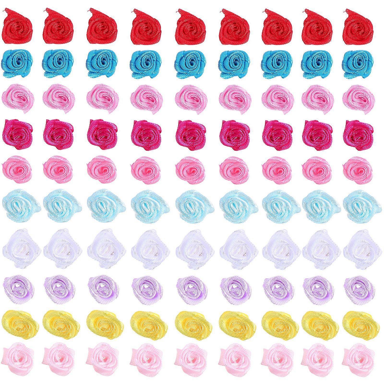 250pcs DIY Ribbon Flowers Handmade Rose Flowers Handicraft Parts (Mixed Color)