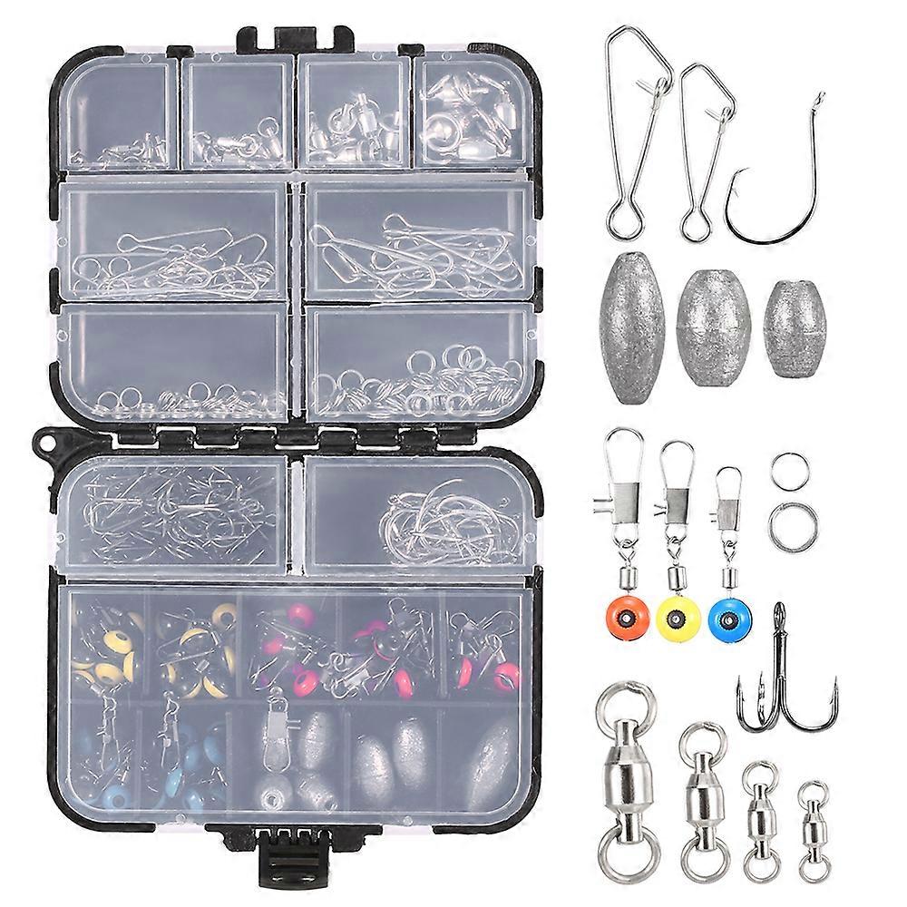 256pcs Fishing Accessories Kit Crank Hooks Sinker Weights Swivels Snaps Connectors Beads Fishing Tackle Box Set