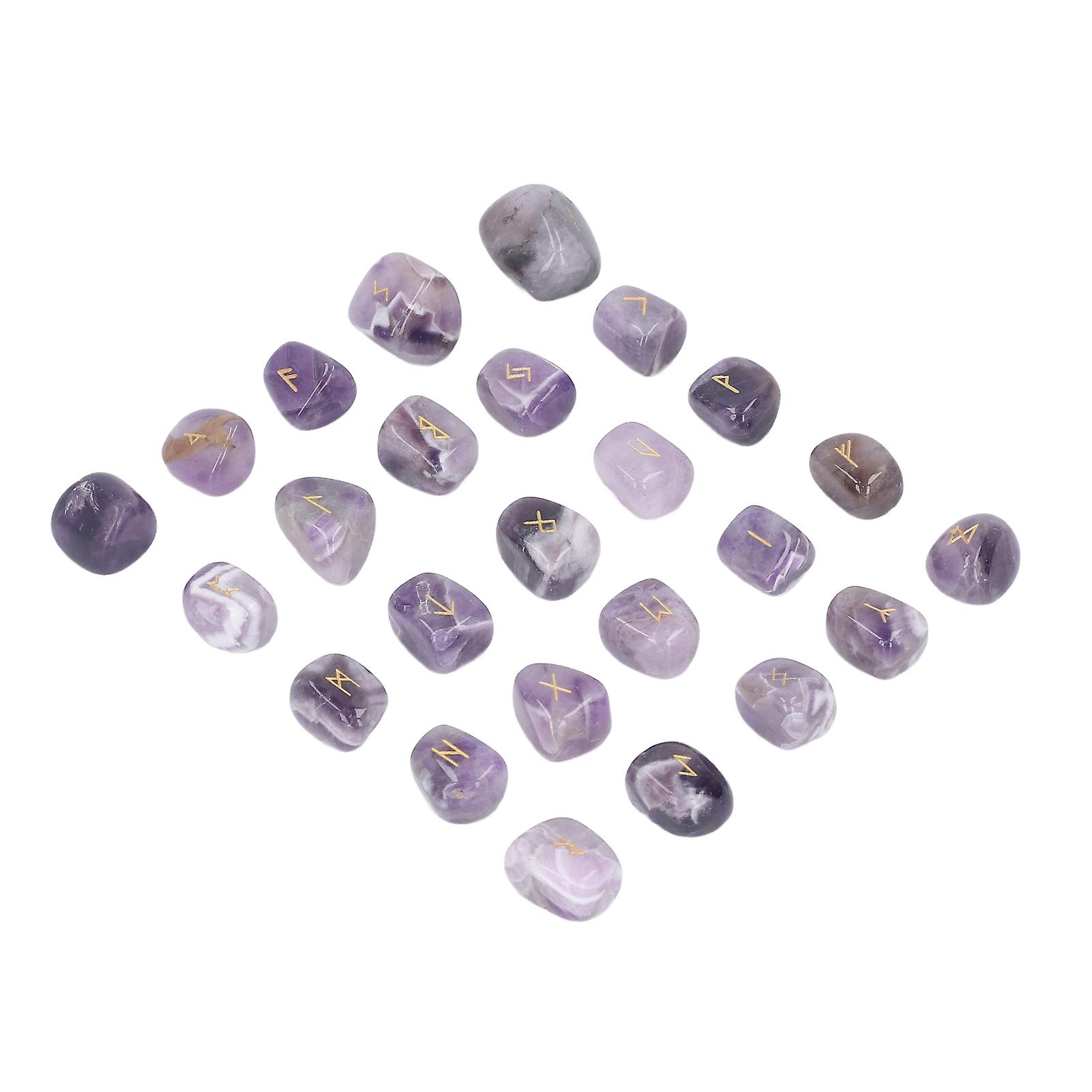 25Pcs Natural Rune Stones Engraved Elder Rune Alphabet Peaceful Mind Lettering Crystal for Divination Meditation Amethyst