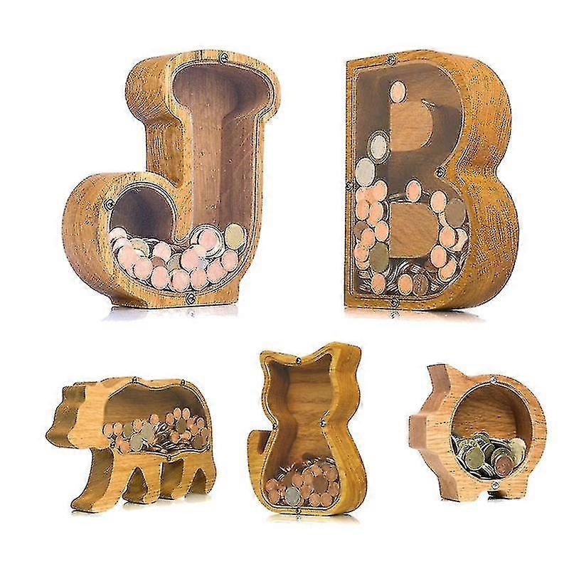 26 Letter Wooden Piggy Bank With Name Sticker Personalized Transparent Glass Money Box For Kids Children Gift Home Decoration