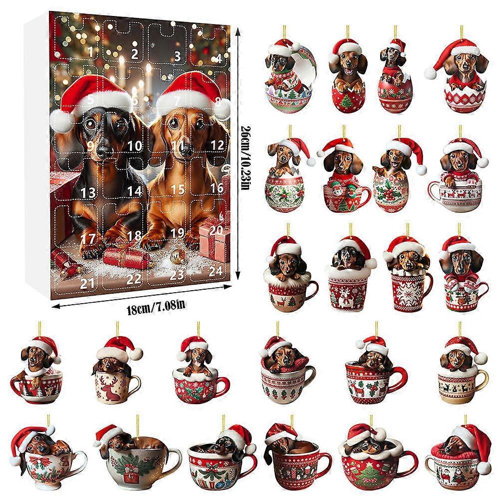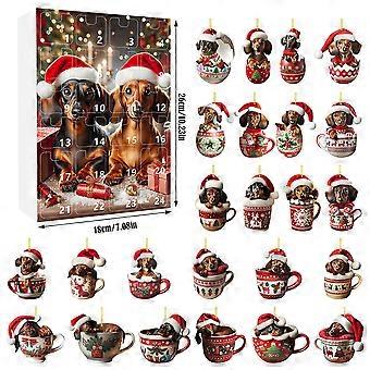 2D Dachshunds Advent Calendar Cat Pendant Ornament 24 Days Christmas Countdown Calendar Xmas Tree Hanging Pendant Christmas Gift