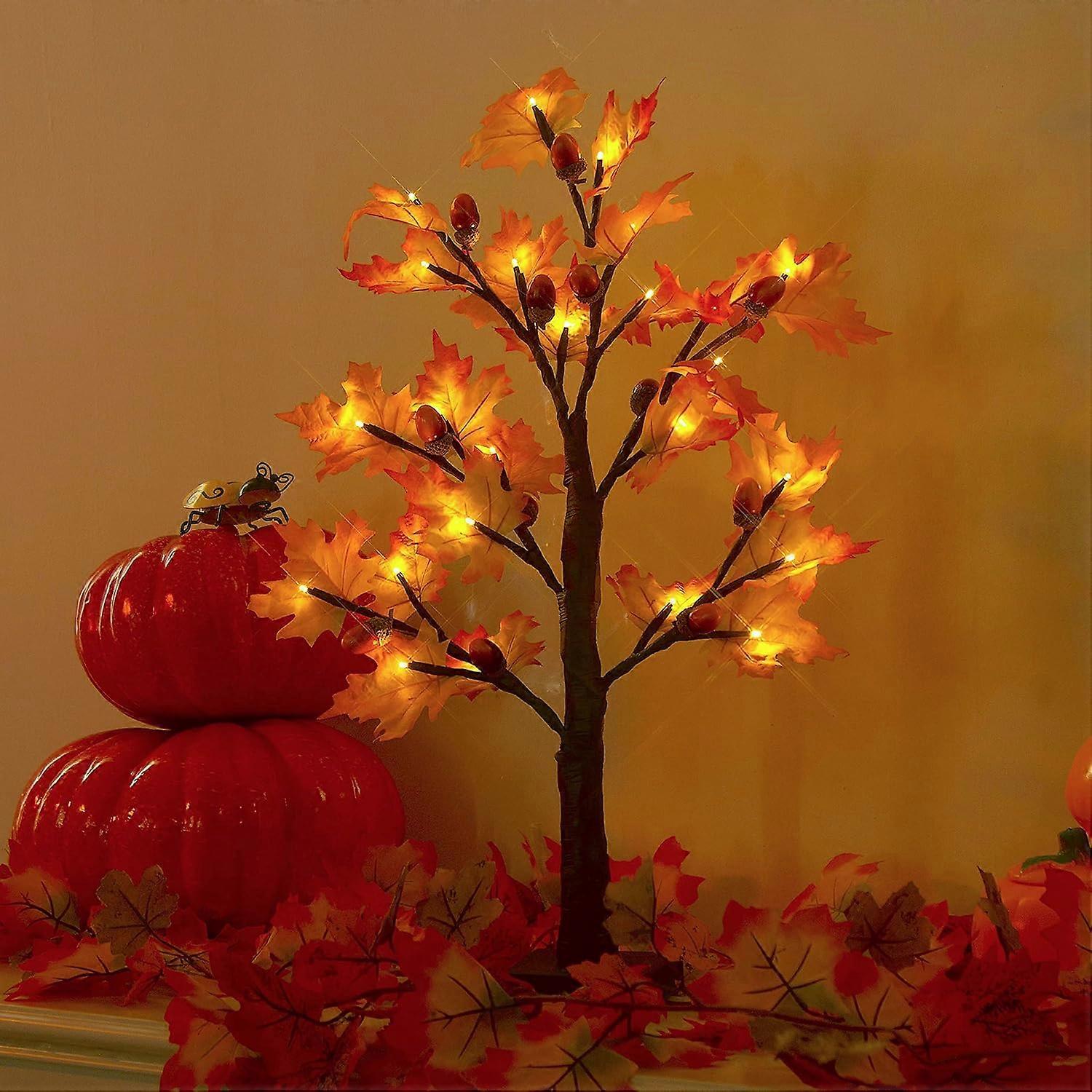 2FT Autumn Maple Tree, Battery Operated With 24LED Warm White Lights For Indoor Outdoor Holiday Decor, Best Tabletop Decorations For A Cozy Fall