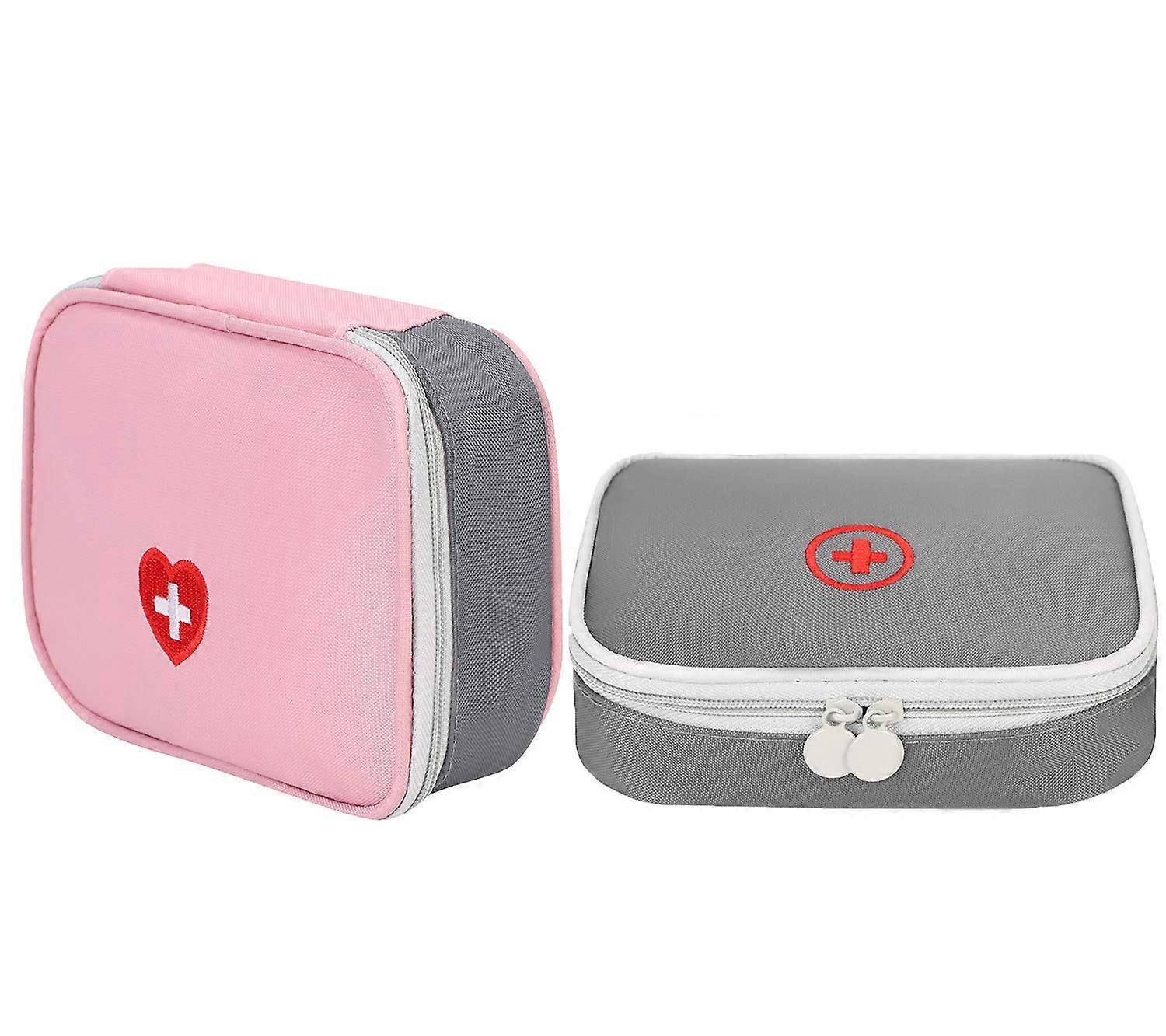 SizePackage include: 2pcs Empty First Aid Bag(Pink+Grey). Pink is as big as gray. Length x width x height: 14 x 4 x11cm(5.5 x 1.6 x 4.4 inches). Pink and grey can meet the needs of your boy or girl. Waterproof MaterialThis multi-layer travel emergency pouch bag is made of high quality water resistant nylon, thick, waterproof, lightweight, easy to carry. Exquisite sewing makes this medicine storage bag durable and not easy to damaged. Three CompartmentsLarge Capacity! 3-layer pocket design including mesh flat pocket, zip-up mesh pocket and main pocket. Multi-layer storage makes you easier to classify and find your items. Premium ZippersFull open zipper for easy pick and place items. Double-head zipper design feels good and you dont worry about that it will drop the chain. Portable Mini Bag for Going outConvenient size makes this first aid kit ideal for storing at school, leisure, gym, backpacking, camping, home, office and even hunting. Storage your daily items like emergency item, lipsticks, powders, coins, jewelry, and data lines, etc.