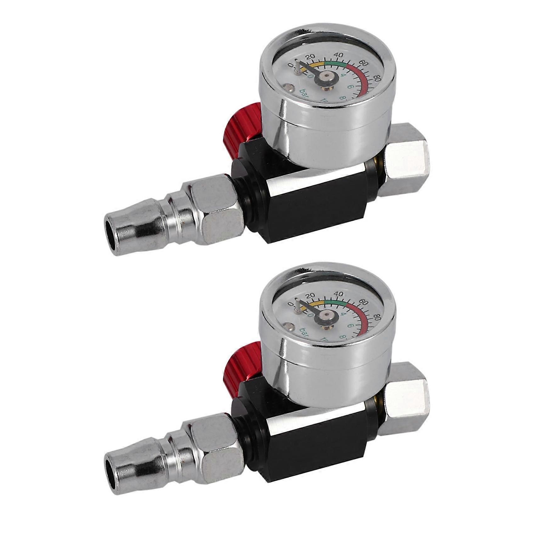 2Pc 1/4 Inch Mini Air Regulator Valve Tool Small Tail Pressure Gauge 48 x 60mm with Nozzle for Tool