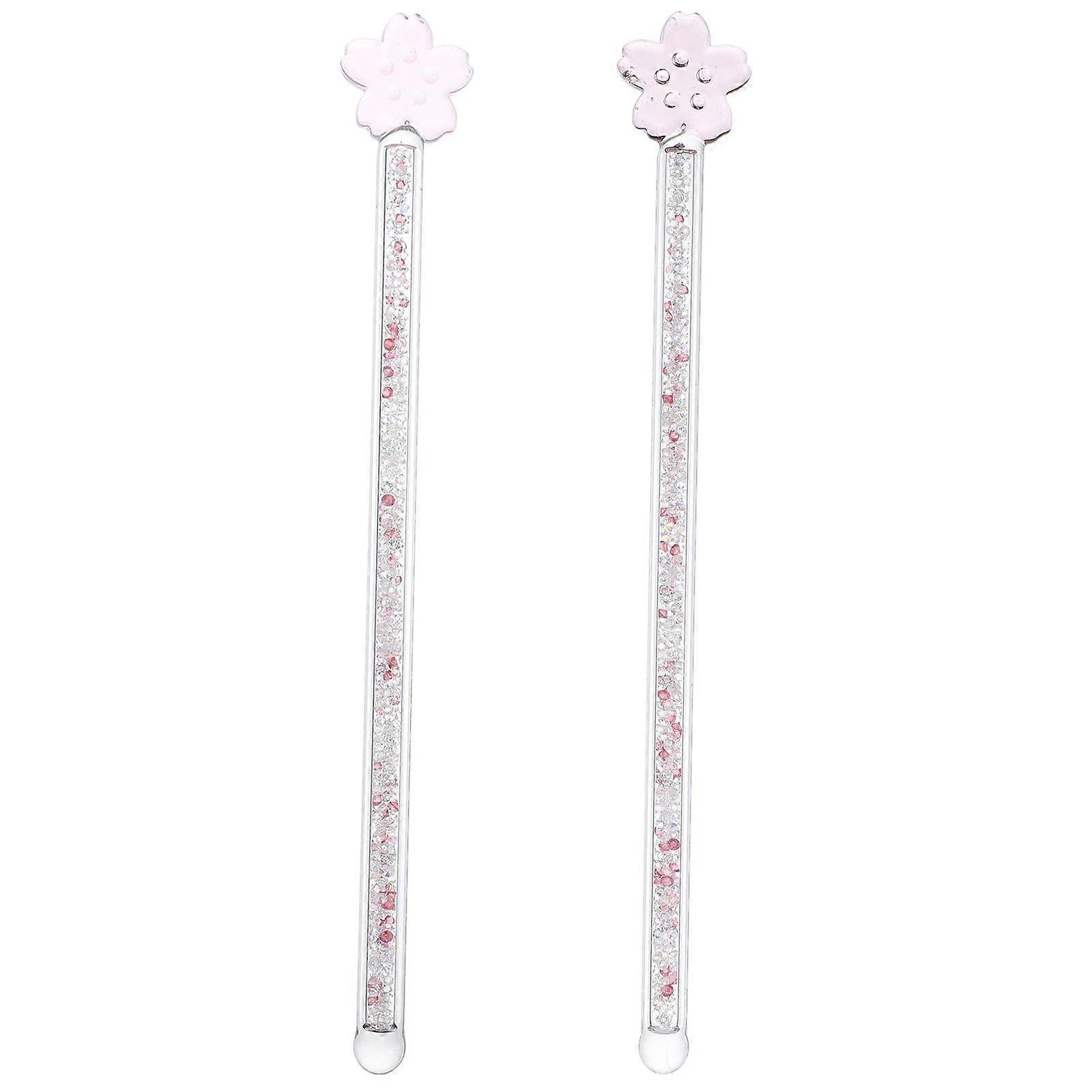2pcs Stirring Rods Glass Cherry Blossom Reusable Coffee Tea Juice Wine Stirrer