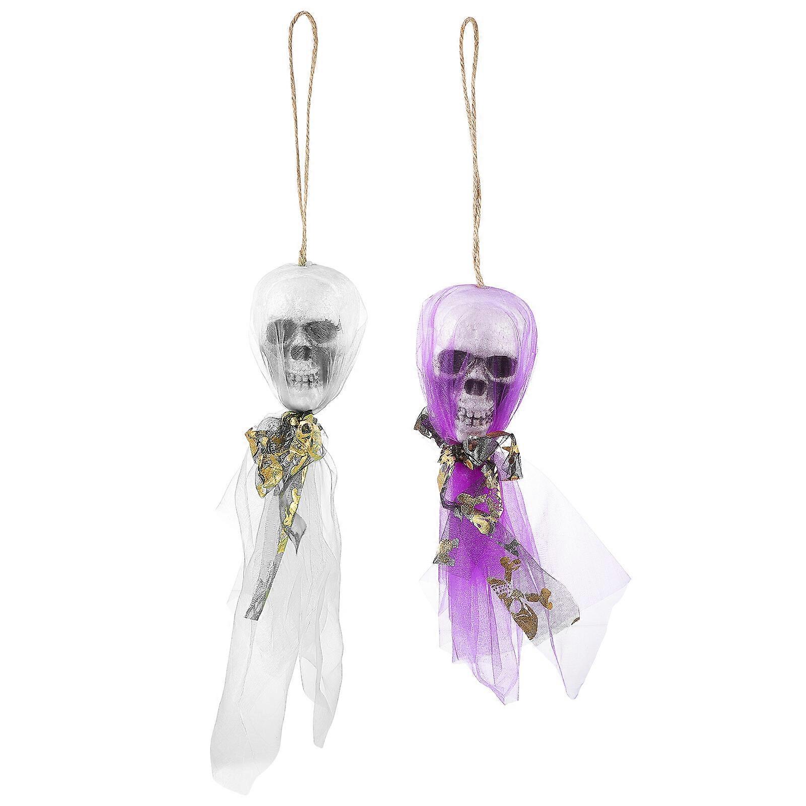 2Pcs Halloween Pendant Creepy Skull Hanging Decor Haunted House Decorating Prop