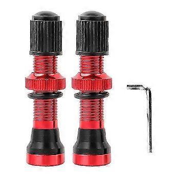 2PCS Bicycle Schrader A/V Valves 40mm CNC Machined Anodized Nipple for Road Bike Tubeless Rims,Red