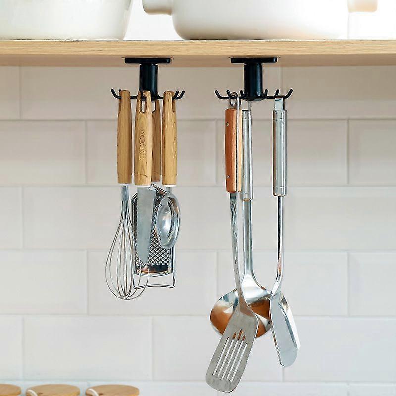 2pcs Kitchen Hook 360-degree Rotatable Storage Rack Free Punching Wall Hanging Kitchen Supplies Hanging Shovel Spoon Artifact Multi-functional Rack