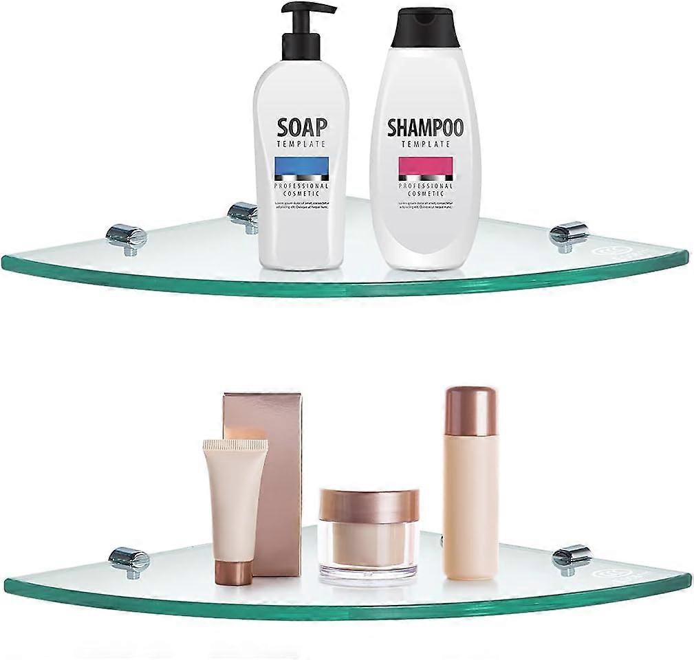 2Pcs Corner Shower Shelves, Bathroom Wall Shelf, Glass Bathroom Shelf with 8 Supports, for Bathroom, Kitchen (24×24 cm) …