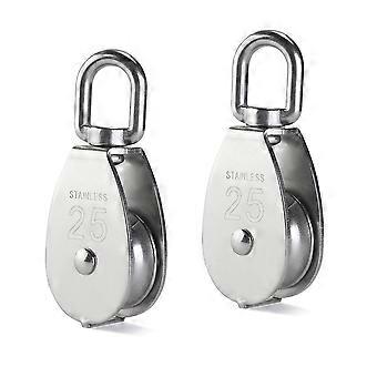2pcs 25mm single pulley block in 304 stainless steel m25 pulley roller loading 400kg - silver