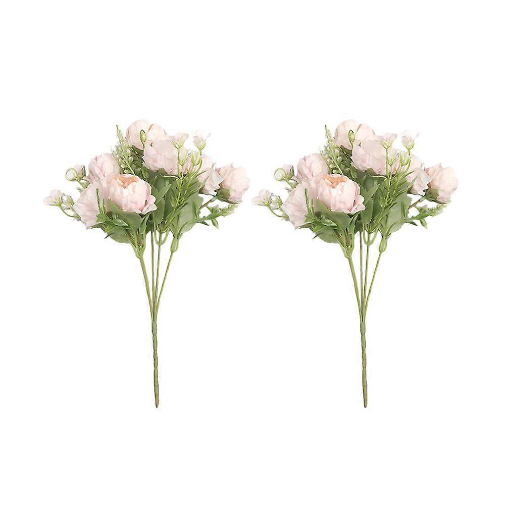 2pcs Lifelike Peony Bouquets Cloth Art Flower Decor Vase Ornaments Household Ornament Vivid Photo Props Pink