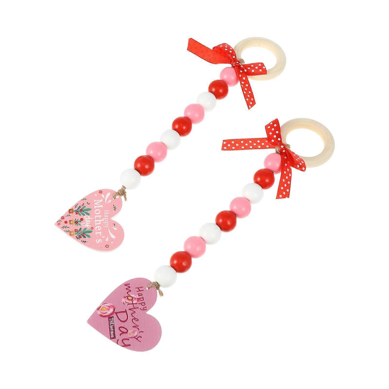 2Pcs Mother's Day Wooden Beads Pendants DIY Party Decor Tassel End Hangings