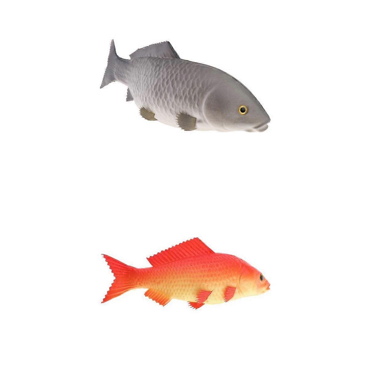 2pcs Carp Fish Ornament Sea Creatures for Home Display Kids Toys Grey+Red