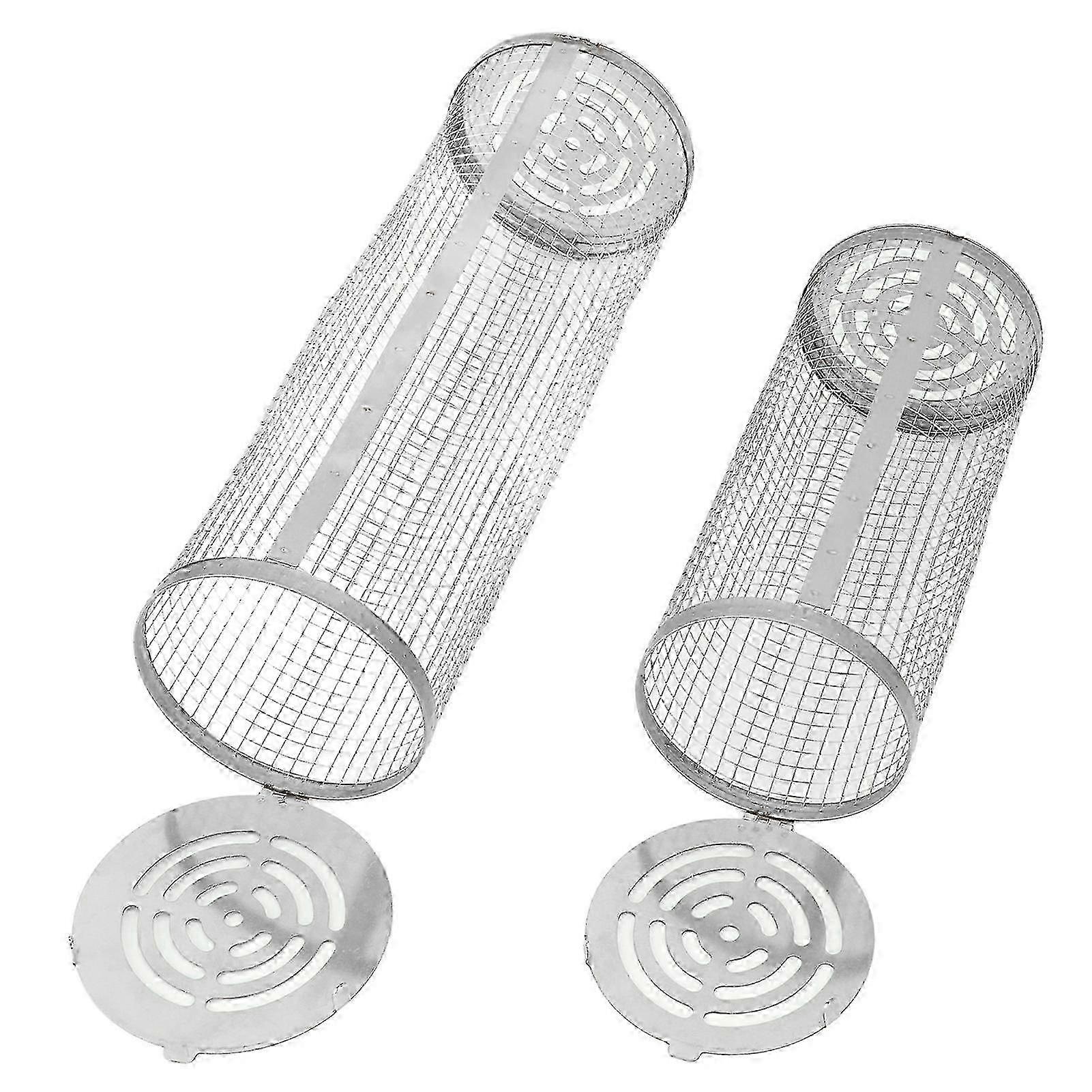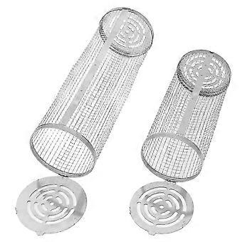 2PCS BBQ Net Tube Stainless Steel Barbecue Grill Basket Rolling Barbecue Cage for Vegetable Seafood