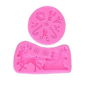 2Pcs Silicone Mold Nonstick Washable High Temperature Resistant Flexible Santa Elk Shape Christmas Silicone Mold