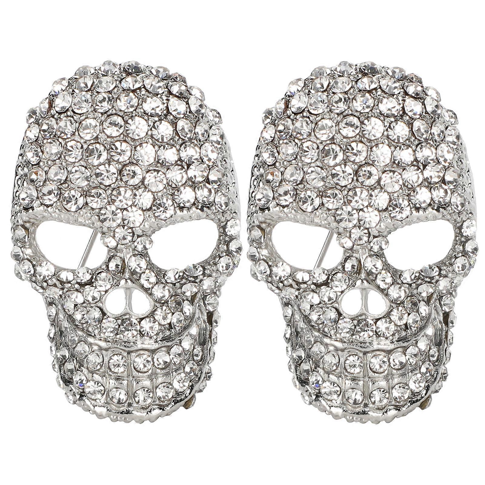 2Pcs Alloy Brooch Vintage Fashion Skull Heads Shape Suit Dress Pin Decor Accessory