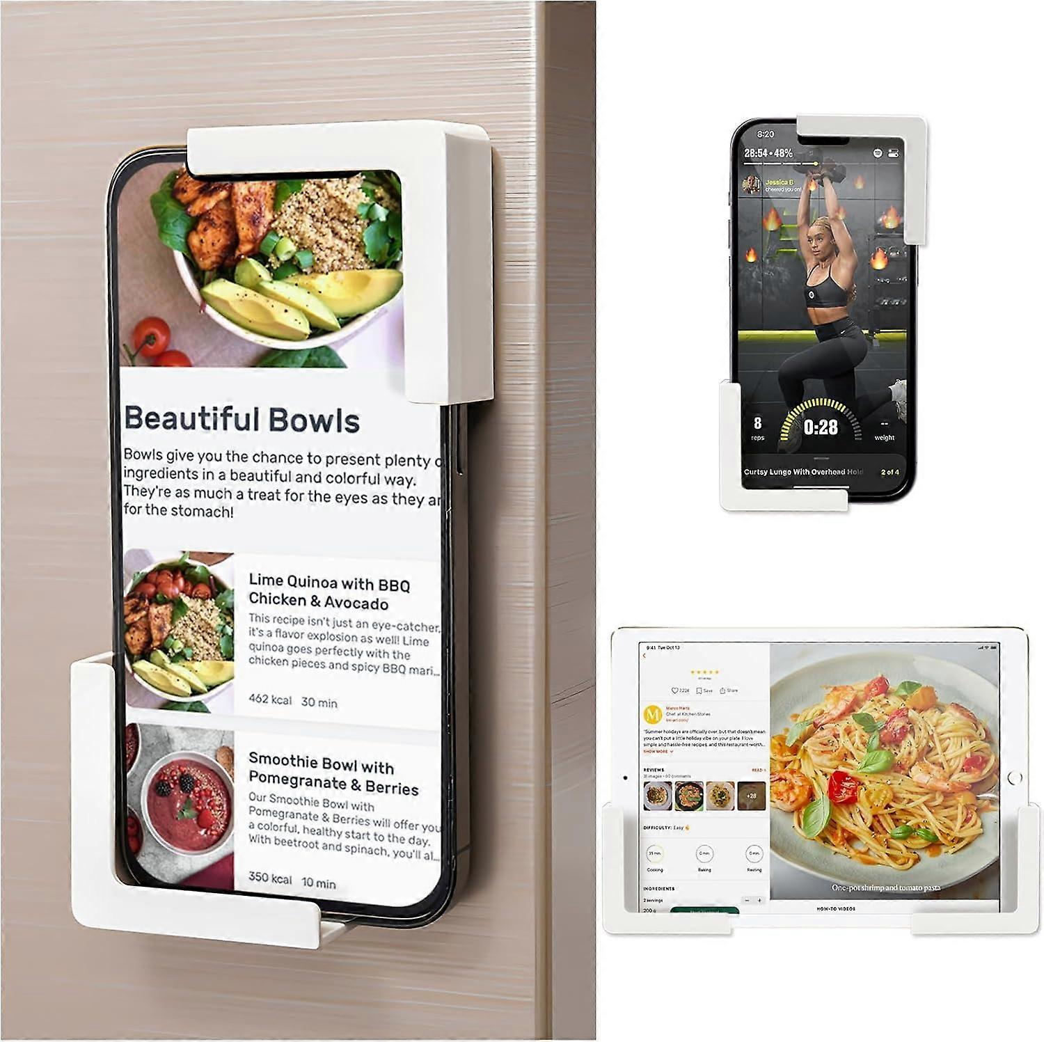 2pcs Mobile Phone Holder With Adhesive Back, No-Hole Tablet Holder, Wall Mounted Holder, Charging Storage Rack, Holder