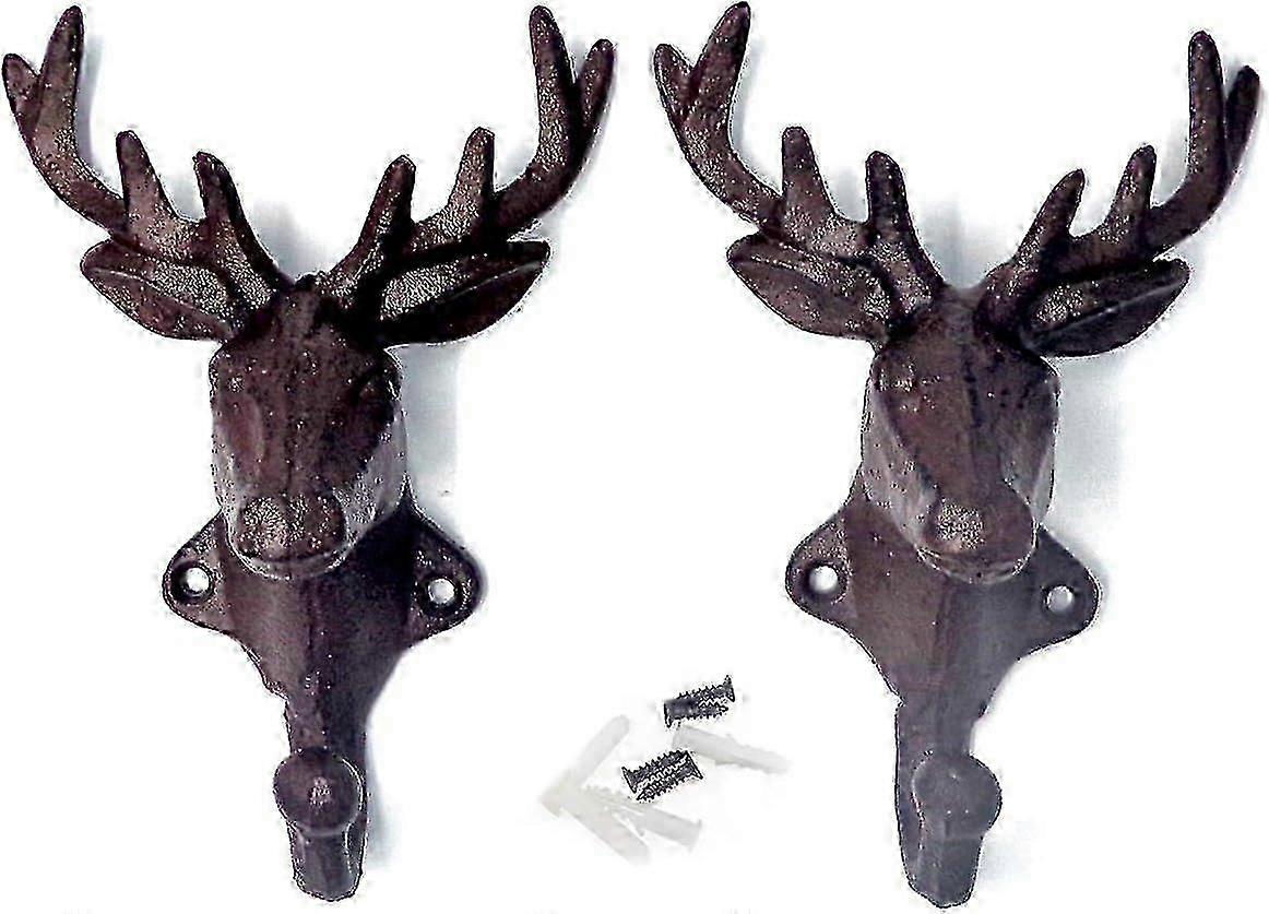 2pcs Deer Head Shaped Wall Hooks Cast Iron Decorative Rustic Single Hanger Animal Heavy Duty compatible Coats Bags Towels Key And More Home Farmhouse