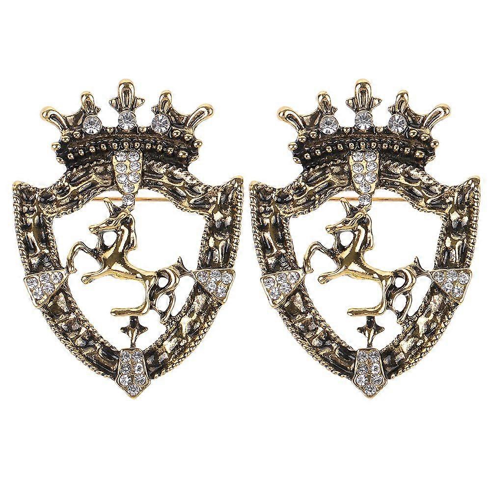 2pcs Elegant Crown Horse Brooch Set For Men Vintage Zinc Alloy Rhinestone Lapel Pins For Suits Wedding And Parties Crown Brooch