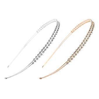 2Pcs Double-layer Rhinestone Hair Hoops Elegant Delicate Headdress for Women