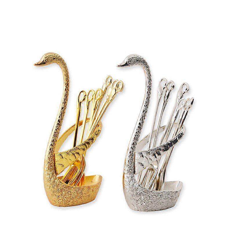 2pcs Swan Fruit Base Holder Forks Set Stainless Steel Salad Dessert Forks Coffee Spoon Fruit Cake Tableware Zero Flatware
