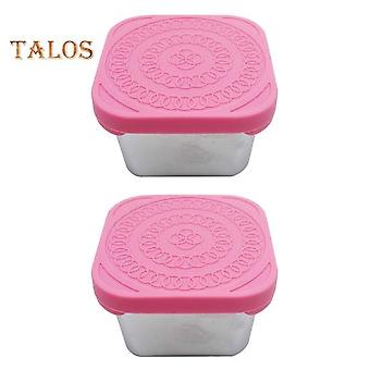 2Pcs Stainless Steel Sauce Cup With Silicone Lid Food Grade Rectangle Leak proof Salad Dressing Container Snack Lunch Sealing Box Kitchen Supplies