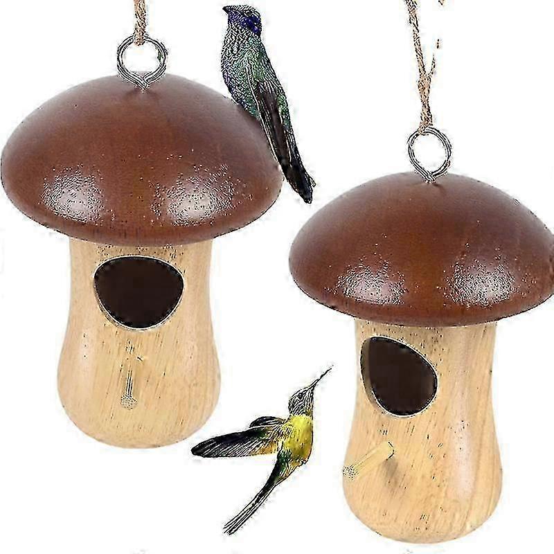 2Pcs Mushroom Shape Garden Yard Decoration Sparrow Cage Swallow Bird House Tree Hanging Feeder Bird Nests Wooden