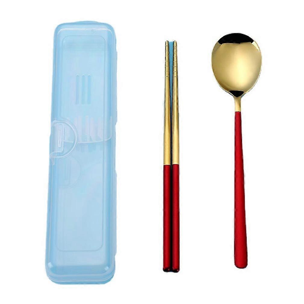 2pcs Cutlery Set Tableware Portable Spoon Chopsticks Stainless Steel Pink
