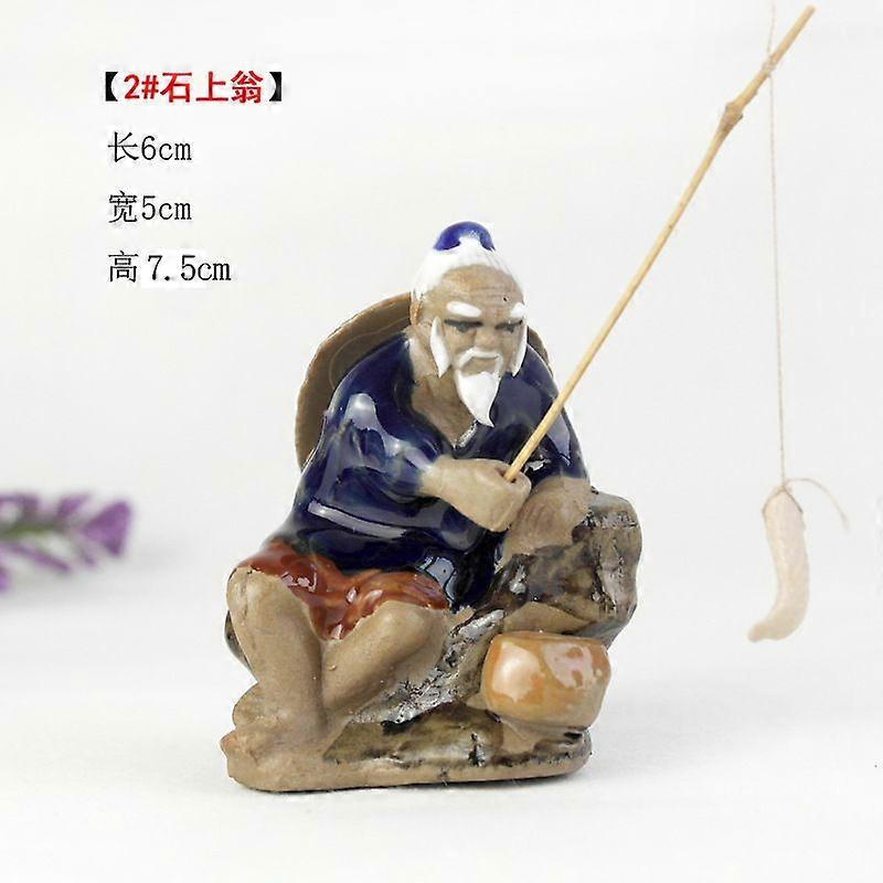 2Pcs Miniature Fisherman Figurines Ceramic Sitting Fishing Ornaments for Asian Zen Garden Fish Tank Bonsai Landscape Decoration Micro Landscape Access
